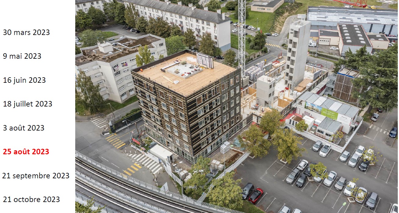 Le concept majeur de cette construction est la préfabrication. Autour des deux noyaux en béton qui intègrent les ascenseurs et les escaliers, plus de 320 m3 d’ossature en poteaux et poutres en bois lamellé collé, plus de 6 500 m² de planchers bois en CLT (Cross Laminated Timber) ainsi que le développé des 3 770m² de façades à ossature bois.